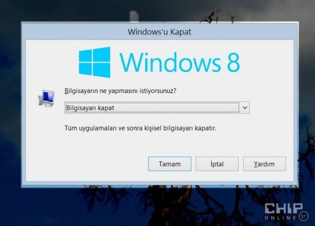 Windows 8'i kapanmanın en hızlı yolu, masaüstüne tıkladıktan sonra ALT+F4 tuşlarına basıp Enter'a basmak.