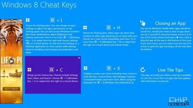 Klavye kısayollarından faydalanarak Windows 8'i çok daha etkili bir biçimde kullanabilirsiniz. Ücretsiz bir uygulama olan Windows 8 Cheat Keys, size kısayolları öğrenmenizde yardımcı olacak.