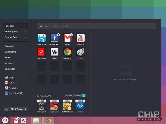 Başlat menüsüne farklı bir açıdan yaklaşan Pokki, Windows 7'den alıştığımız menüden farklı, uygulamaları, ayarları ve aramayı bir araya getiren bir arayüz sunuyor.